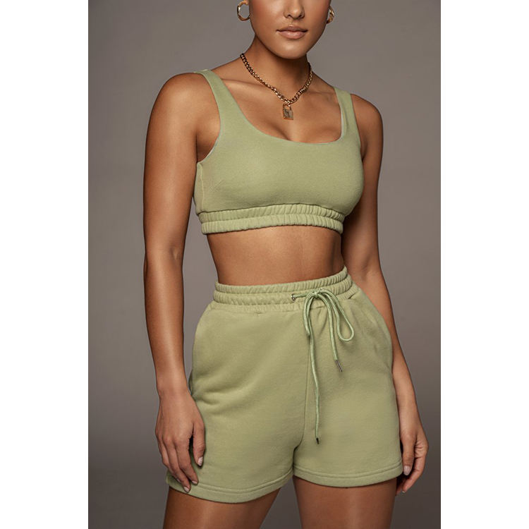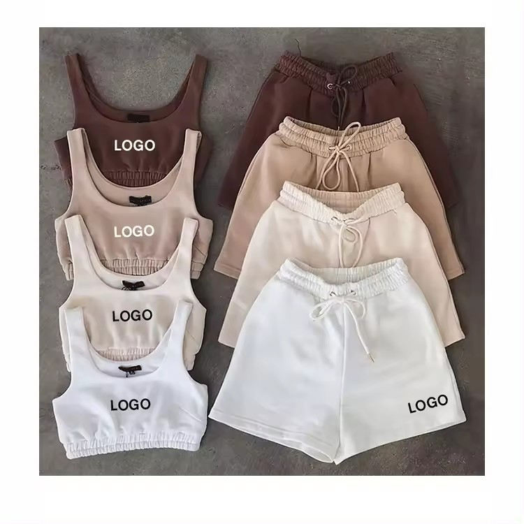 Ensembles Deux Pièces Personnalisables Logo Coton Confortable Été 2025 pour Femmes : Crop Top et Short Cycliste à Poches