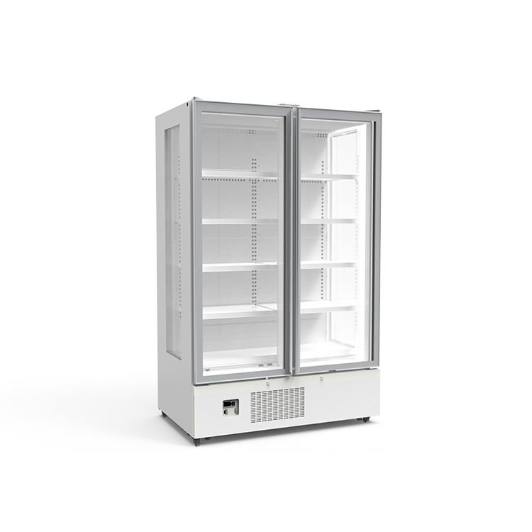 Congélateur à crème glacée commercial vertical à trois portes en acier inoxydable avec logo personnalisé, refroidissement par air, dégivrage automatique, affichage numérique, pour bar