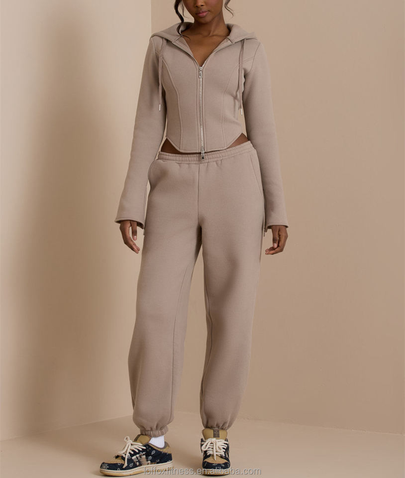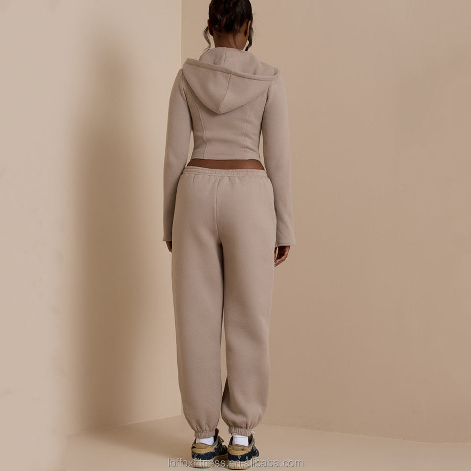 Ensemble de survêtement en velours à fermeture éclair avec logo personnalisé, 2 pièces, sweat-shirt et pantalon, pour femme