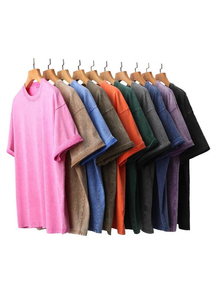 T-shirt en coton de luxe personnalisé avec logo, lavé, surdimensionné, à manches courtes, pour hommes et femmes