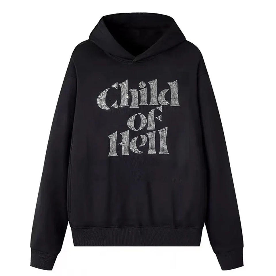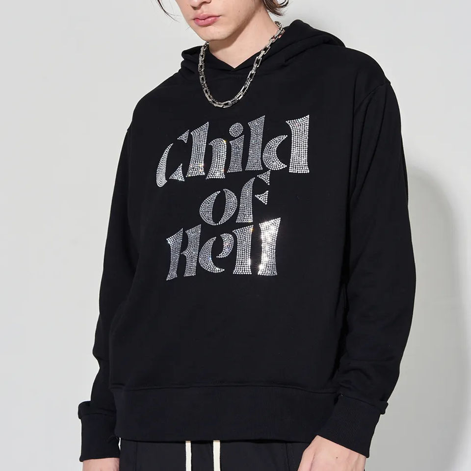 Sweats à capuche thermiques surdimensionnés en coton imprimé vierge épais avec logo personnalisé Sweats à capuche pour hommes grande taille avec strass