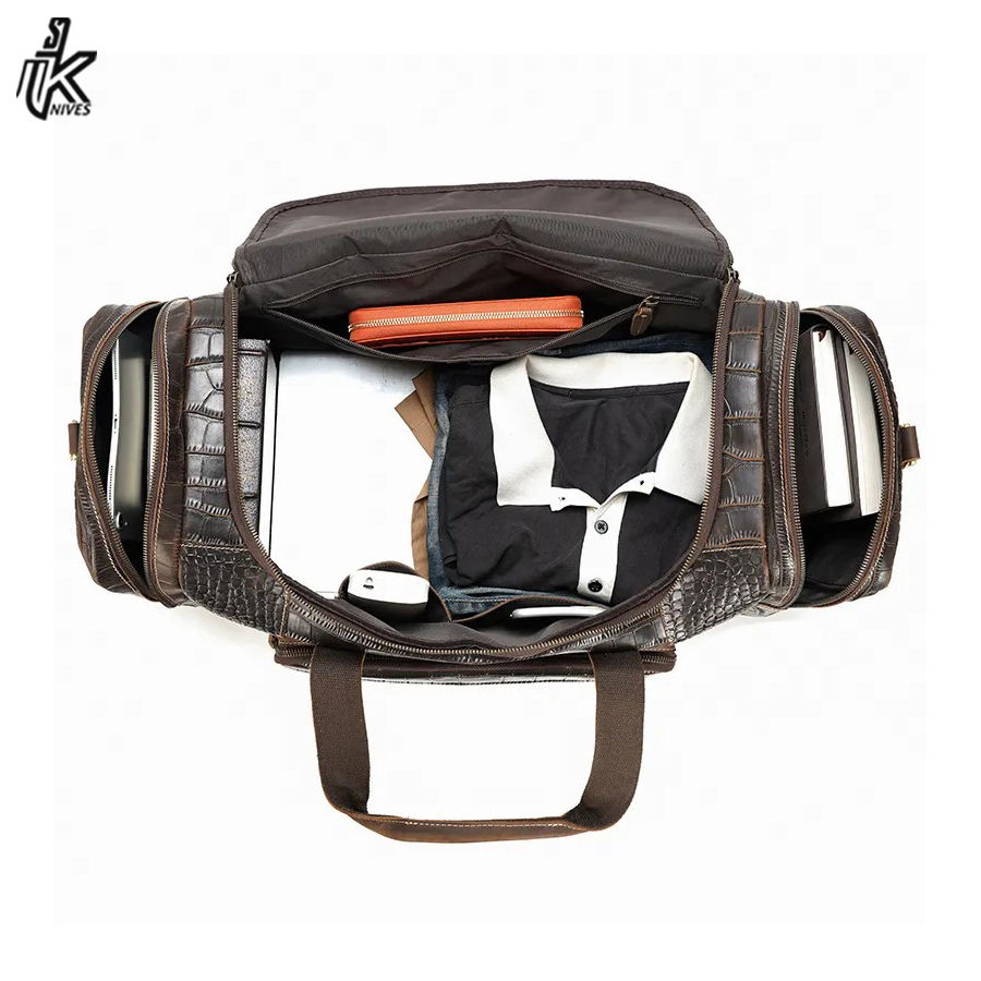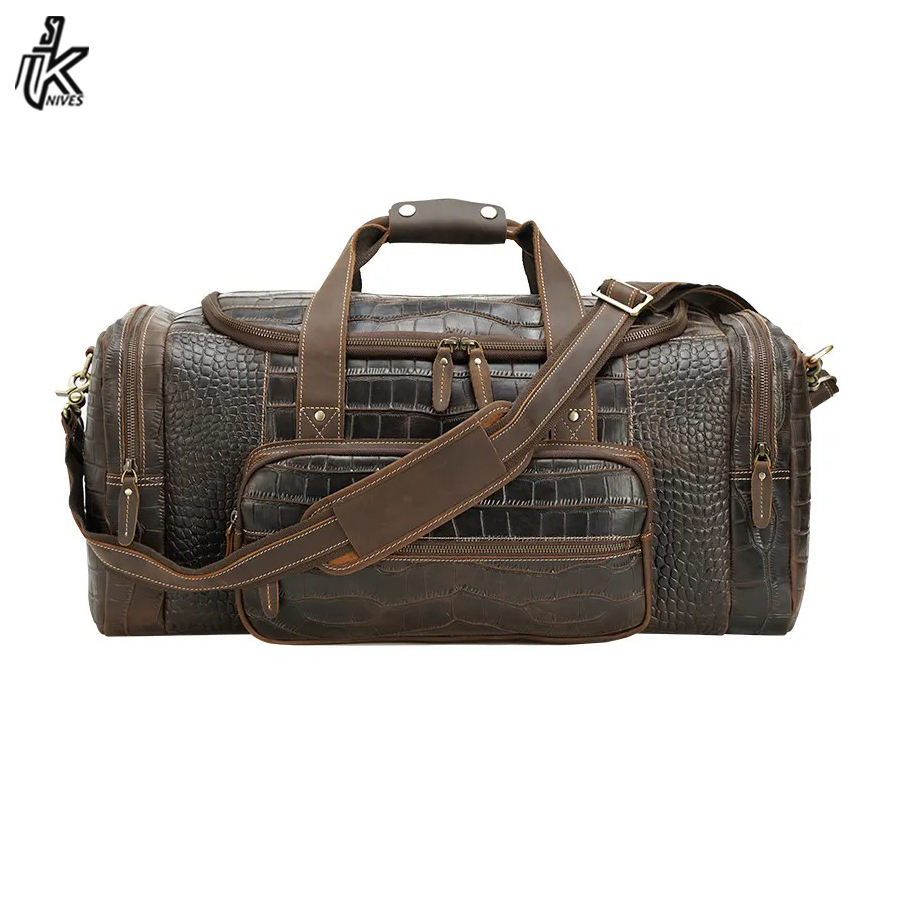Sac de voyage en cuir grande capacité avec motif crocodile et logo personnalisé, 23 pouces