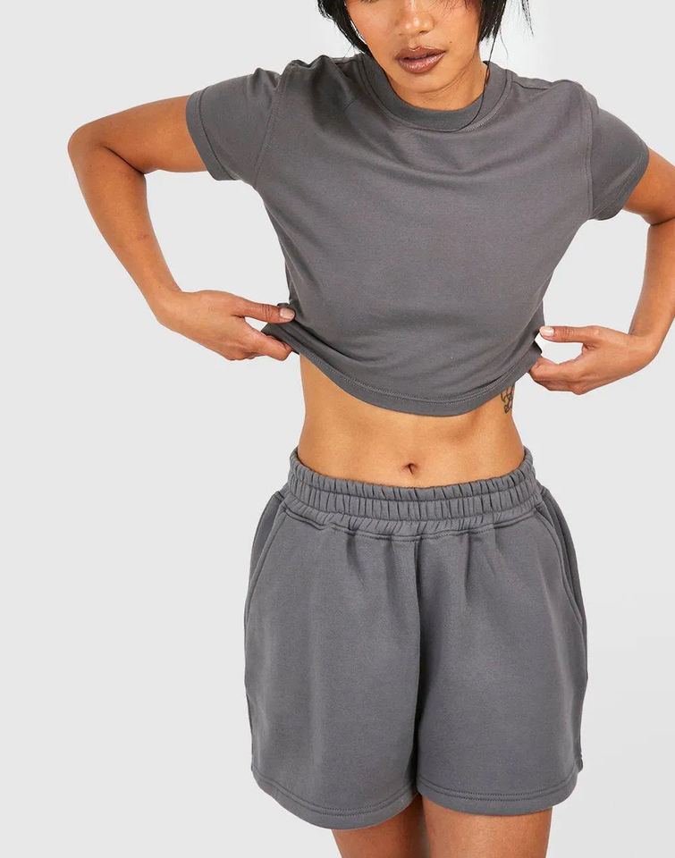 Ensemble T-shirt court et short personnalisé avec logo pour femme – Tenue décontractée deux pièces pour l'entraînement et la détente