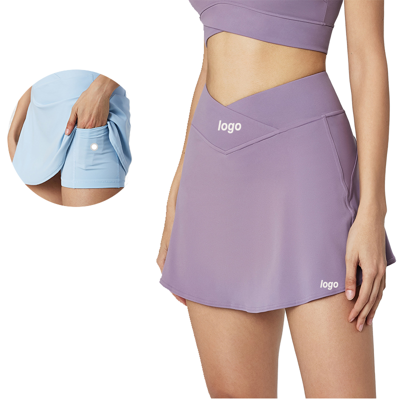Jupes de badminton et de tennis 2 en 1 à taille croisée avec logo personnalisé, taille plus, raquette de pickleball avec poches, jupe courte à taille haute et douce