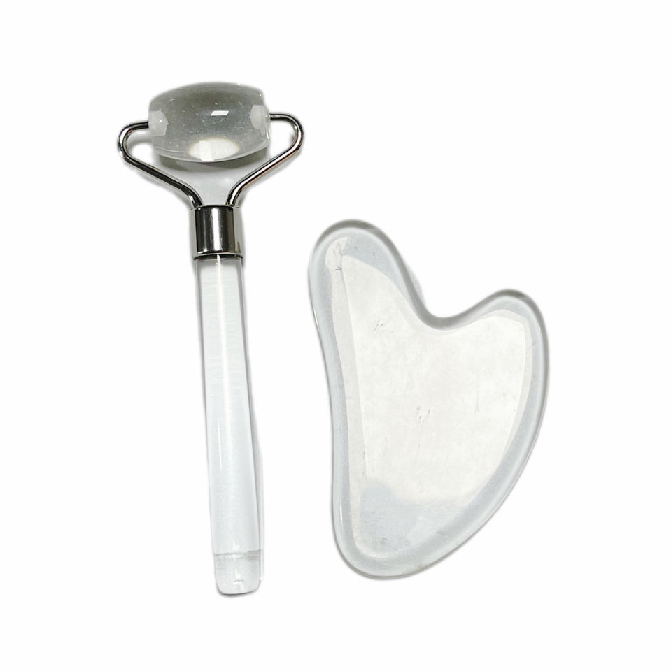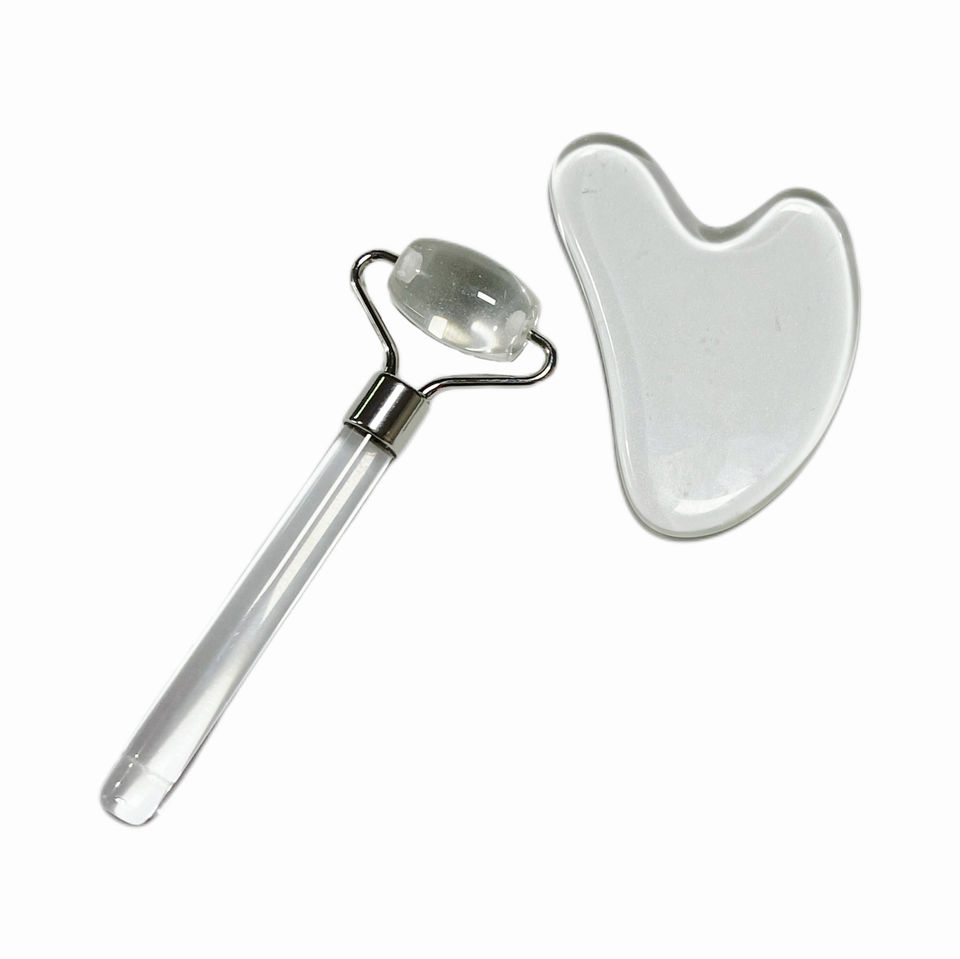 Jeu de pierres à rouleaux de jade en cristal avec logo personnalisé Masseur lifting blanc avec Gua Sha pour les yeux et le cou pour l'application du visage