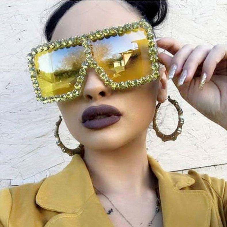 Lunettes de soleil carrées surdimensionnées en cristal avec logo personnalisé, grandes lunettes de soleil ornées de strass, lunettes de soleil surdimensionnées pour femmes, lunettes de soleil en diamant