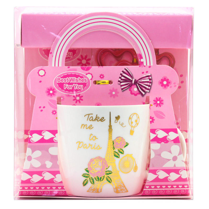 Conception personnalisée de logo Acceptation production unique Paris Tour Eiffel Tasse en céramique colorée pour la Saint Valentin coffret cadeau