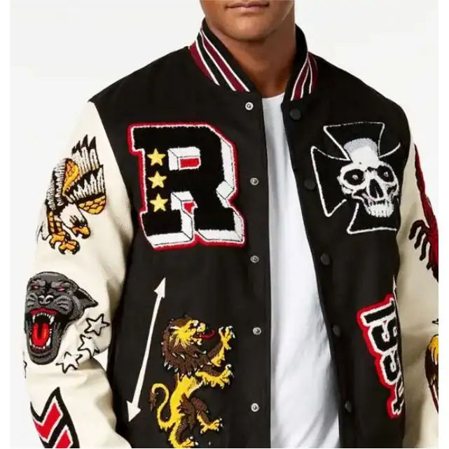 Blouson universitaire tendance 2025 pour homme – Vêtement d'extérieur style streetwear avec boutons sur le devant, impression en relief, 100 % laine