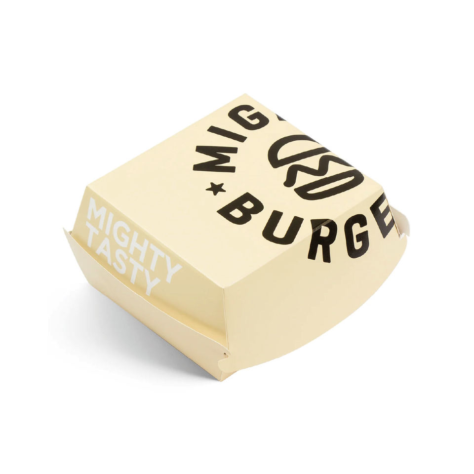 Boîte à hamburger Nafees personnalisée avec logo et maquette de design pour la livraison de repas de fête, emballages pour sandwichs et hamburgers
