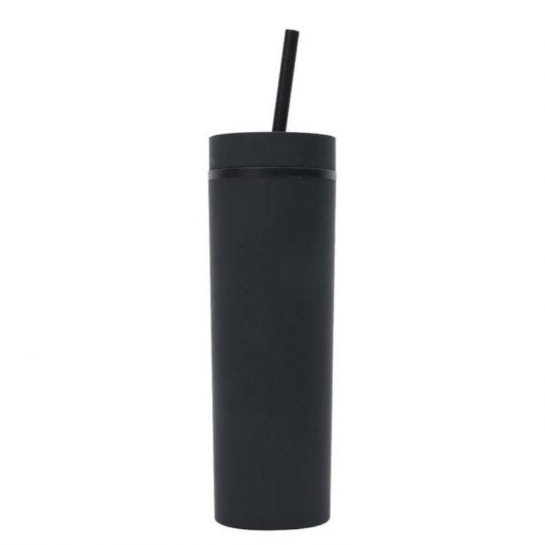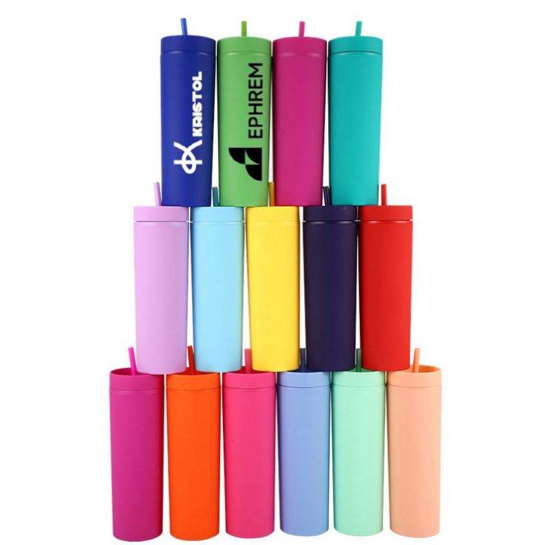Gobelets en acrylique mat à double paroi de 16oz avec logo personnalisé, gobelets maigres et droits réutilisables en plastique avec paille