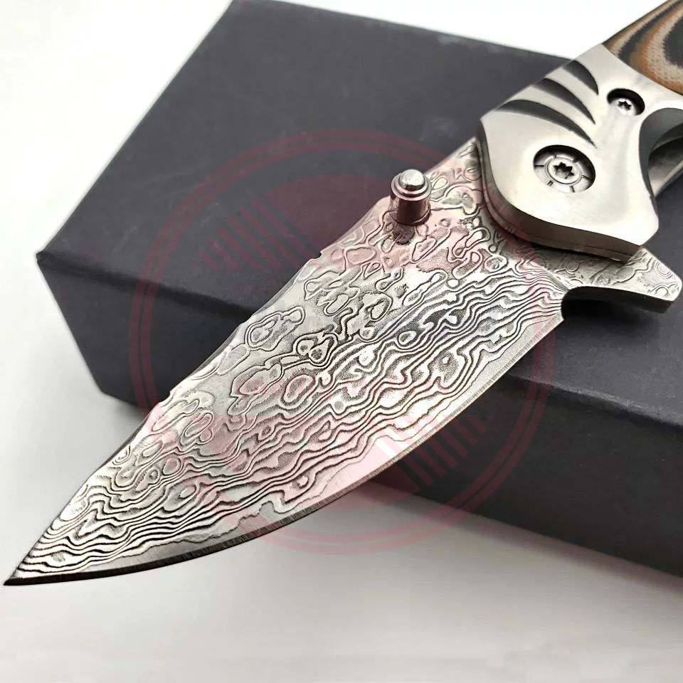 Couteau pliant à lame fixe en acier damas avec logo personnalisé, manche en bois, couteaux polyvalents de poche