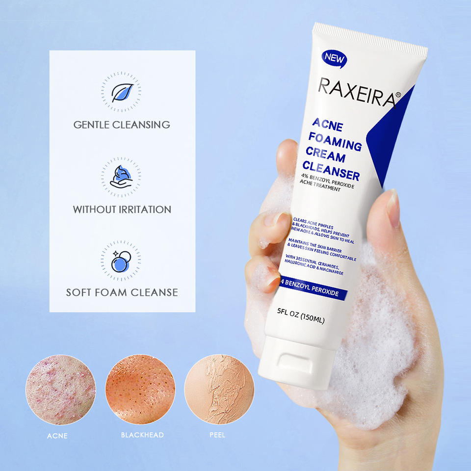 Mousse nettoyante en profondeur avec logo personnalisé Mousse nettoyante pour le visage acné Crème moussante pour l'acné Nettoyant de marque privée Meilleur nettoyant pour le visage pour les peaux grasses