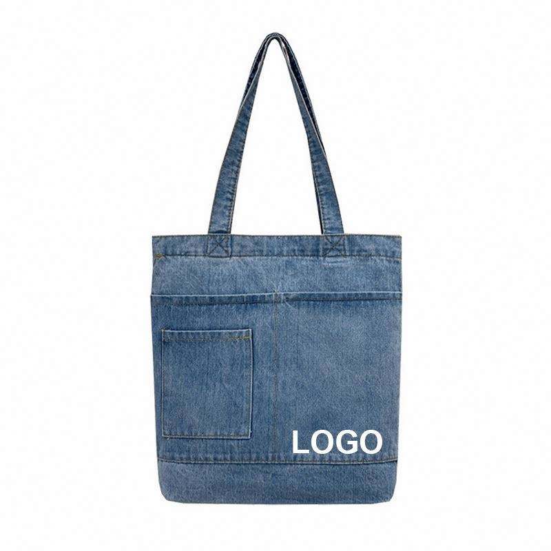 Sac en jean personnalisé avec logo, design simple, sac fourre-tout pour le shopping, sac à main tendance en jean pour femmes