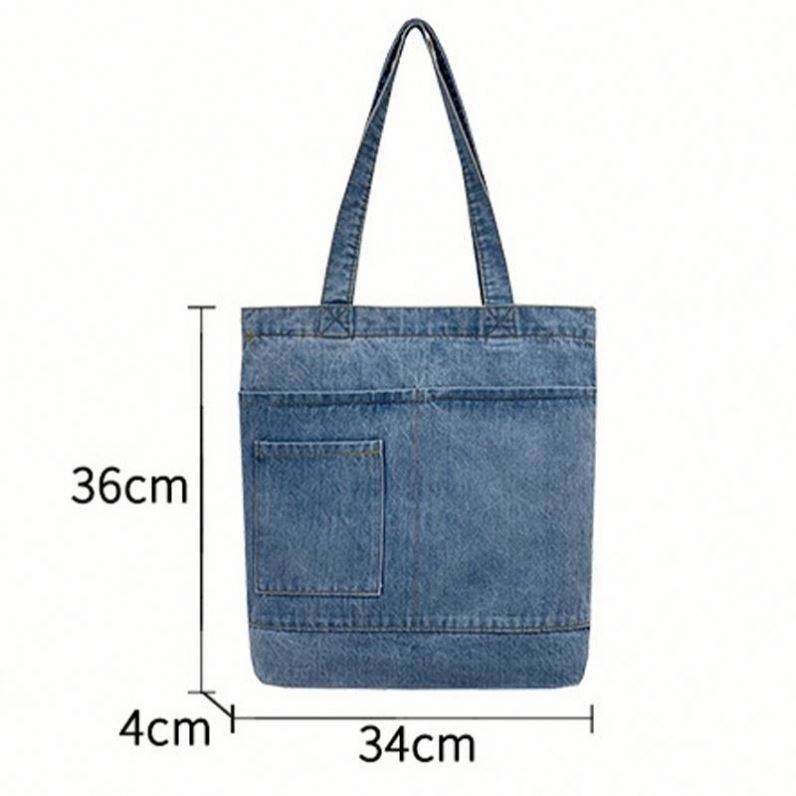 Sac en jean personnalisé avec logo, design simple, sac fourre-tout pour le shopping, sac à main tendance en jean pour femmes
