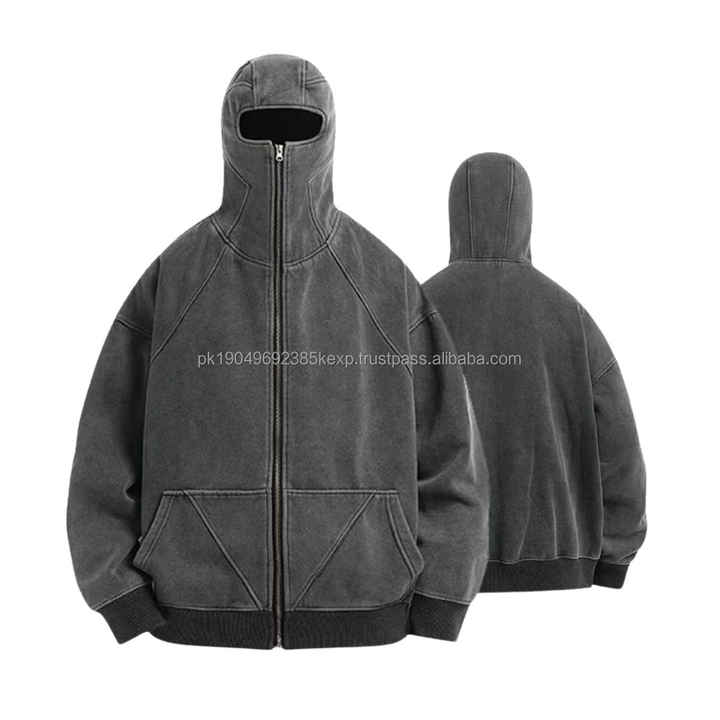Conception de logo personnalisée, masque de haute qualité, sweat à capuche ninja gris, fermeture éclair, léger, broderie en coton, streetwear, cagoule