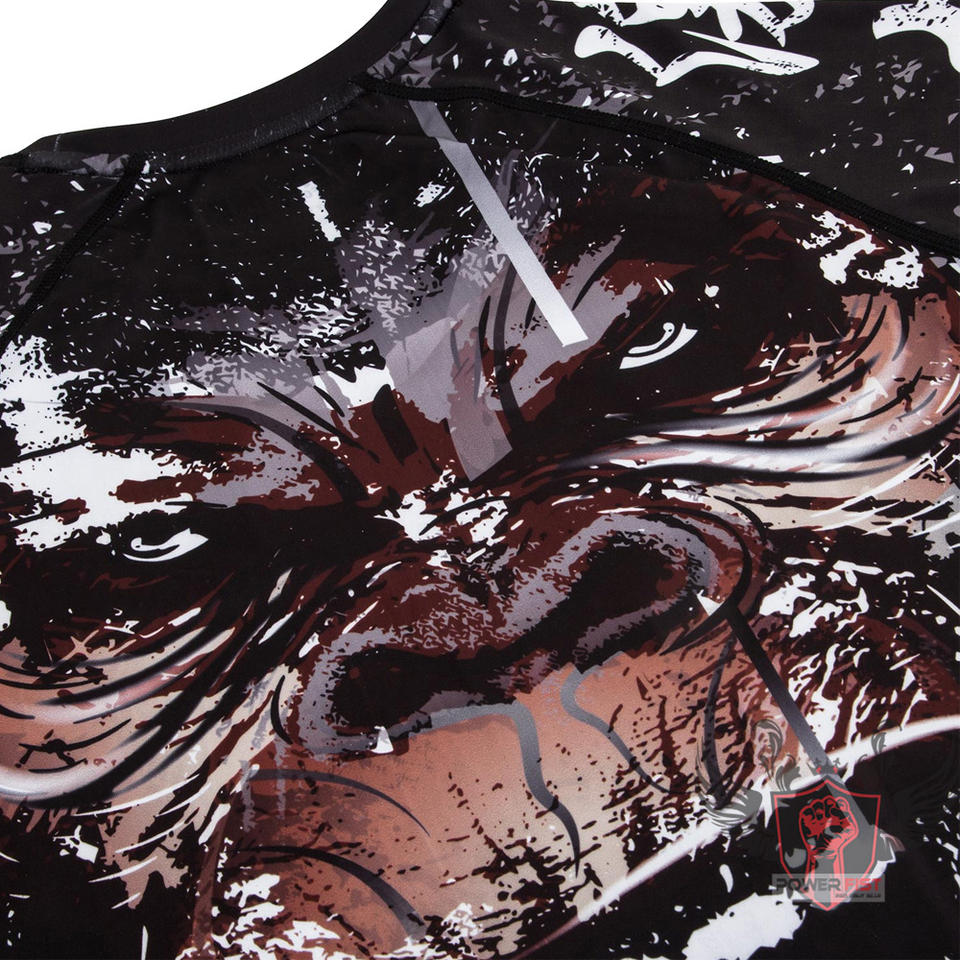 Conception de Logo Personnalisé à Manches Longues Power Fist Gorilla Rash Guard pour Adultes Sublimé UPF 50 Spandex Tissu pour MMA Utilisation