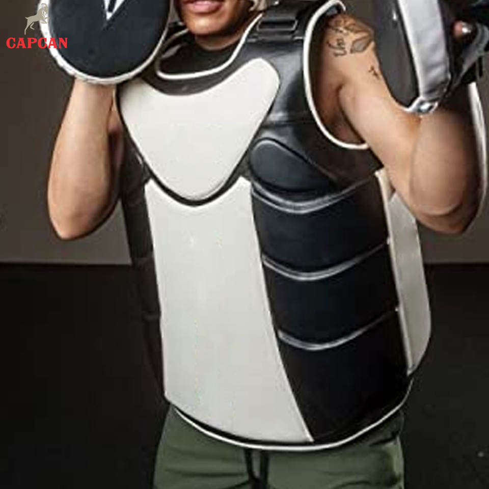 Protection de poitrine pour homme avec logo personnalisé, fabriquée avec des matériaux de qualité supérieure, pour MMA et boxe.