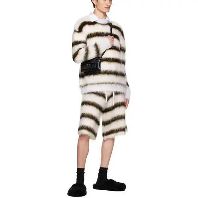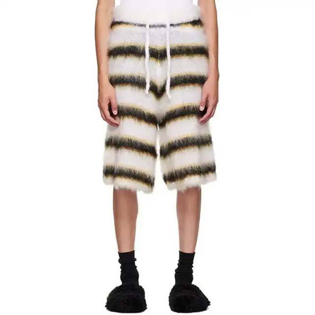 Logo personnalisé Design Mohair Laine mélangée Fuzzy Tricoté Rayé Mohair Shorts Shorts personnalisés Lavable Shorts de haute qualité