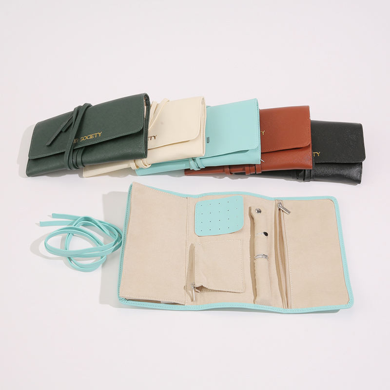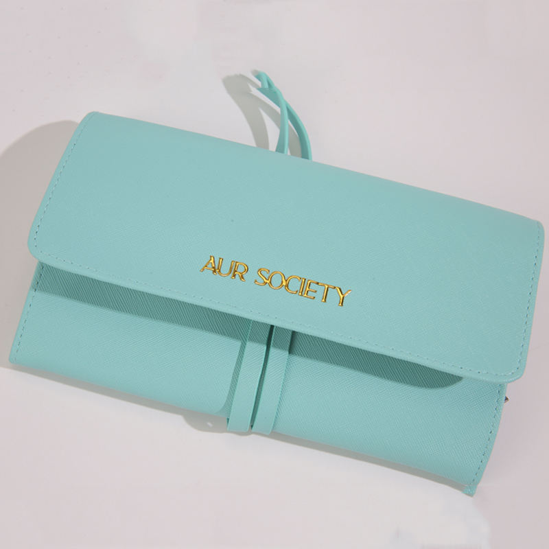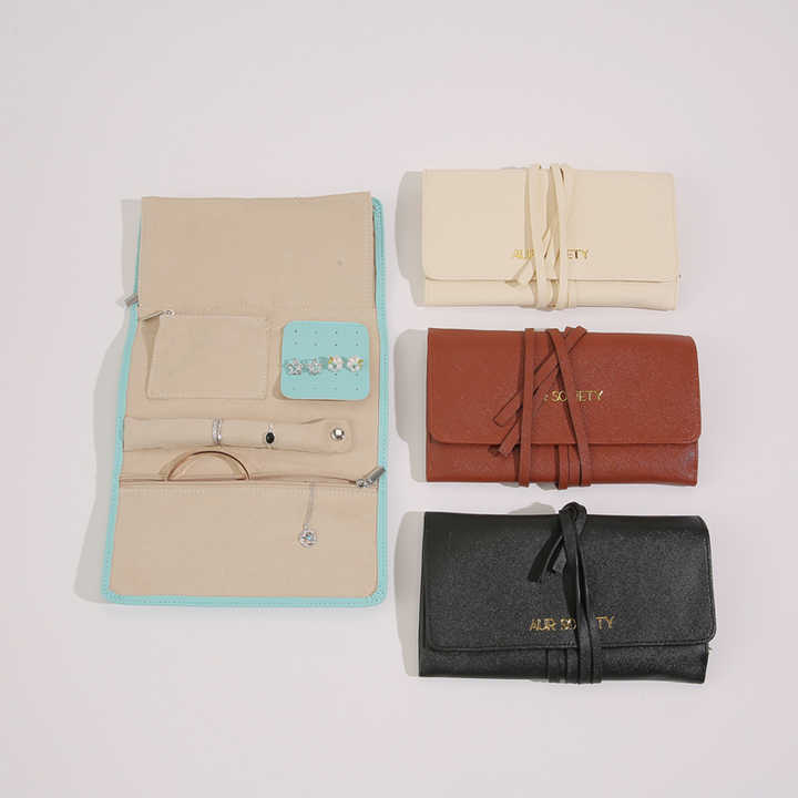 Pochette de luxe en cuir PU avec logo personnalisé, organiseur de voyage en velours pour bijoux, étui de rangement pour bijoux