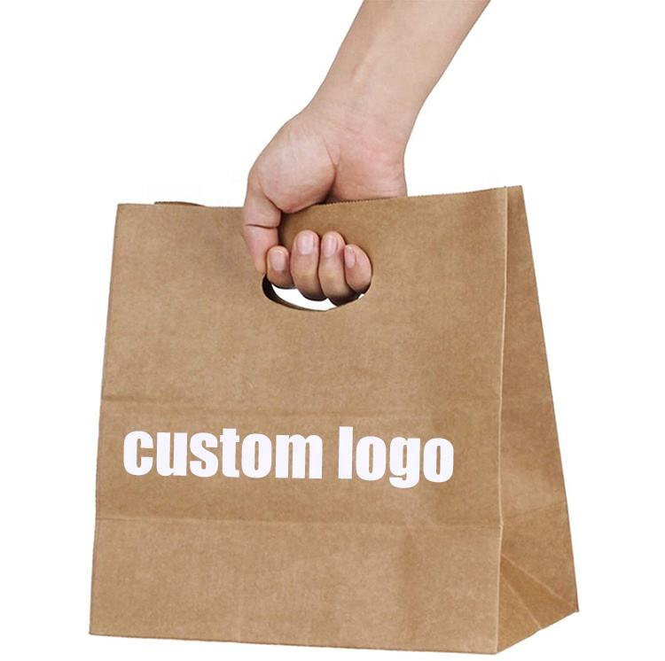 Sacs en papier Kraft avec Logo personnalisé, carlin pour Restaurant, prise rapide, avec poignée, unités