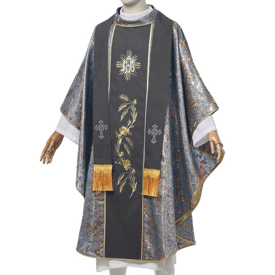 Conception de logo personnalisé vêtements religieux vêtements liturgiques catholiques brodé église clergé vêtements chasuble prêtre Robes