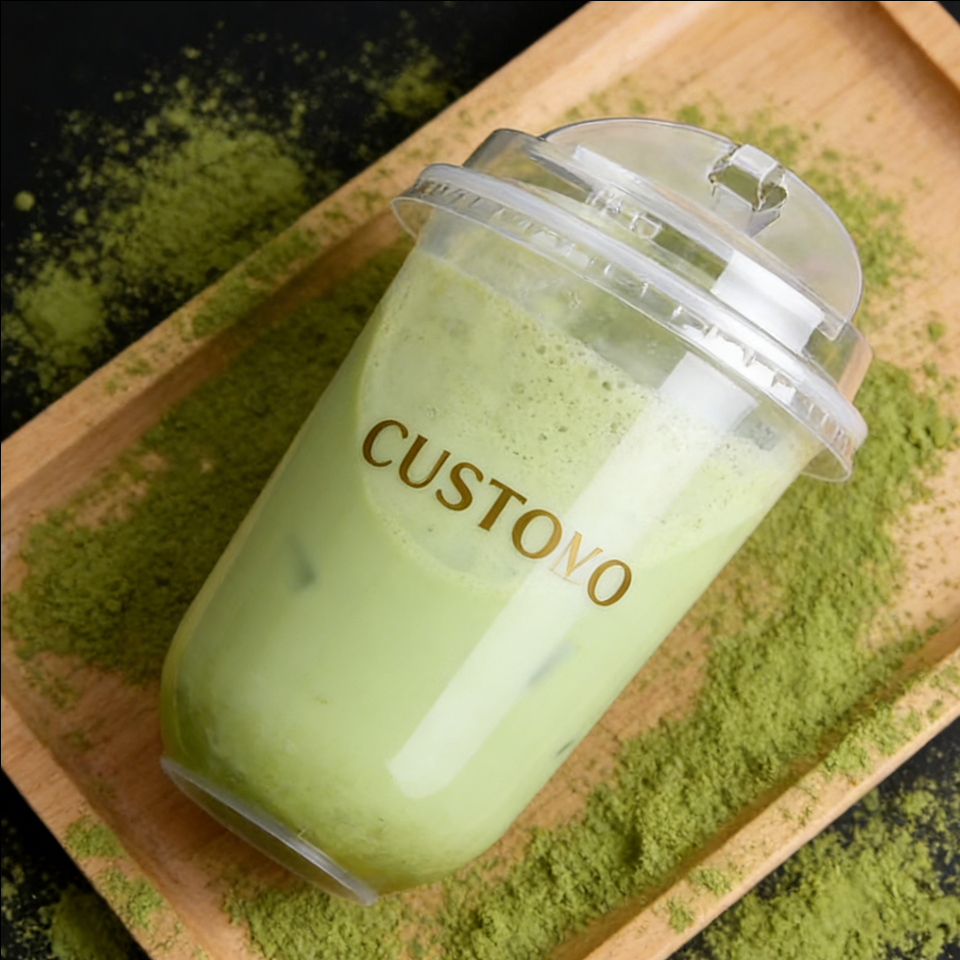 Gobelets jetables transparents en PP en forme de U avec logo personnalisé, à paroi simple, diamètre 90 mm, pour thé au lait Boba, boissons froides, café, 16 oz, 24 oz