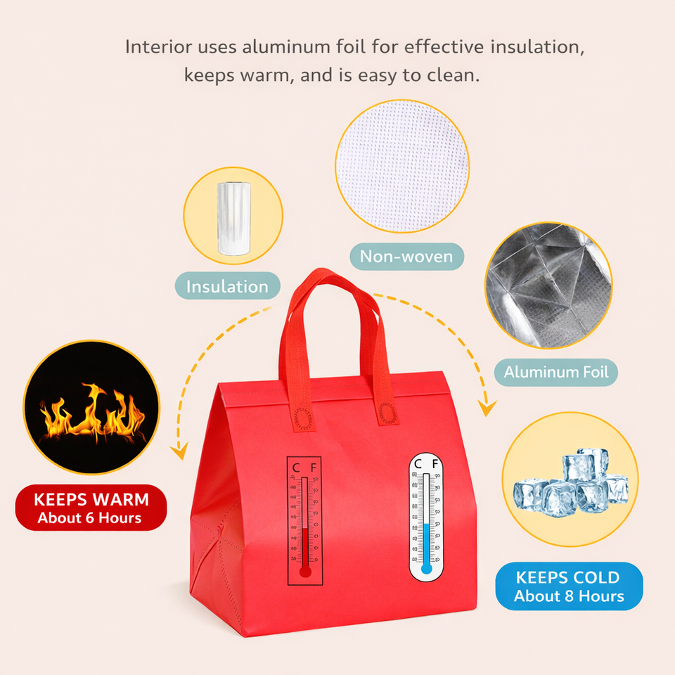 Sacs isothermes jetables personnalisés avec logo, imperméables, en aluminium, isolés thermiquement, pour la livraison de nourriture chaude ou froide, sacs non tissés