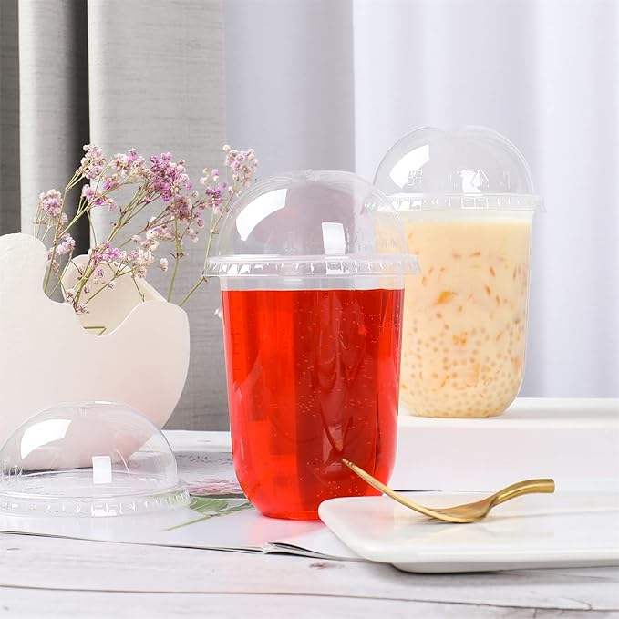 Gobelets en plastique jetables personnalisés avec logo, couvercle en U transparent, 6/8/9/16/24/32 oz, gobelets à paroi simple givrés pour desserts, café, thé au lait