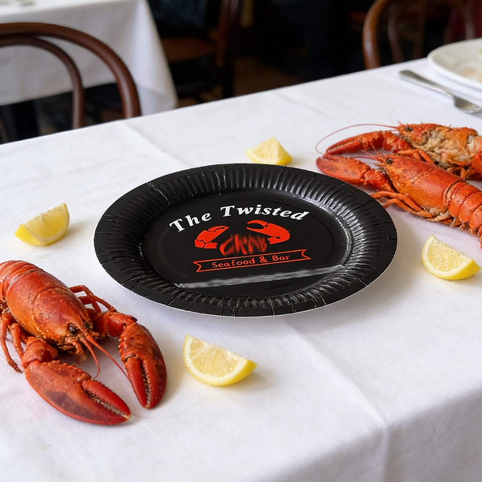 Assiette en papier jetable ronde personnalisée avec logo pour desserts, gâteaux, plats à emporter, pour restaurants, bars, hôtels