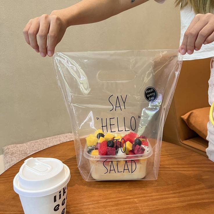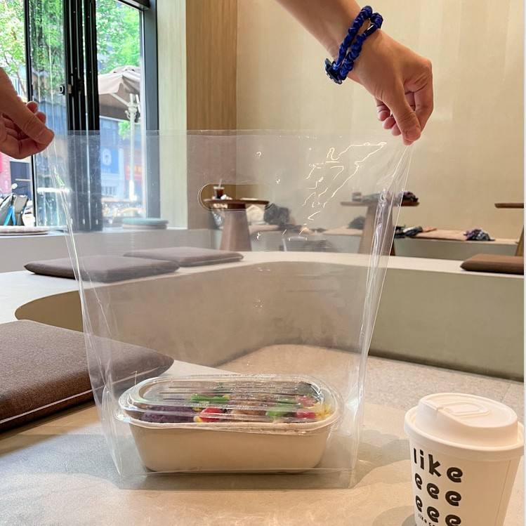 Sac à main jetable en plastique PE transparent avec logo personnalisé Lot de 50 pour emballage cuisson gâteau dessert pain nourriture salade anti-odeur