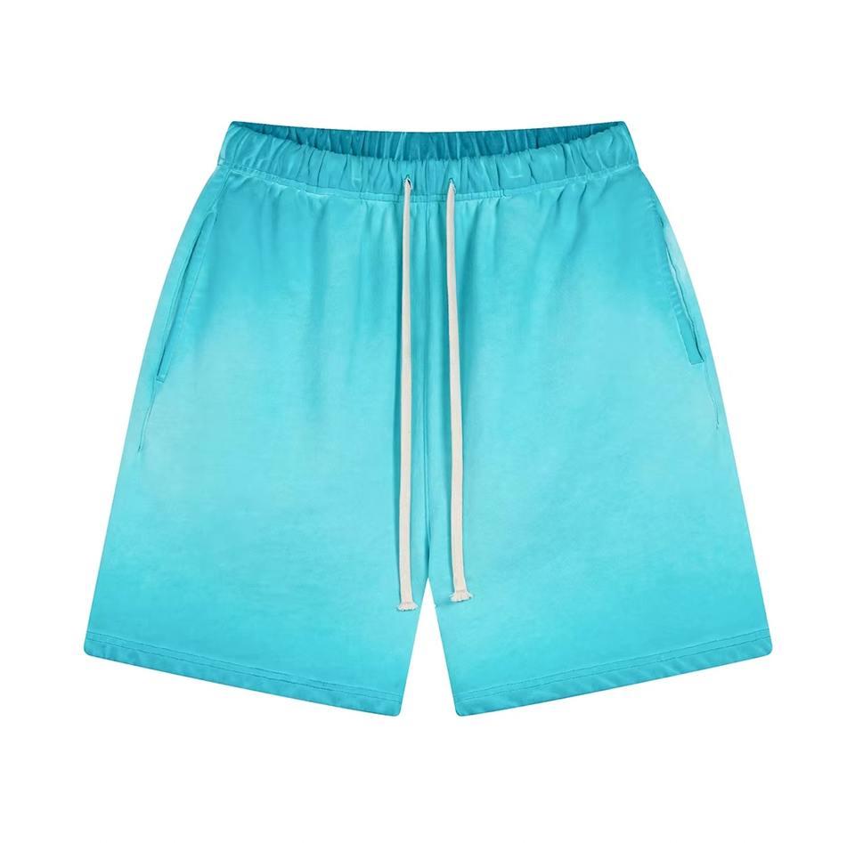 Shorts en coton pour homme avec logo personnalisé, broderie vieillie, bords coupés, délavage acide, effet soleil éclairé, coupe courte