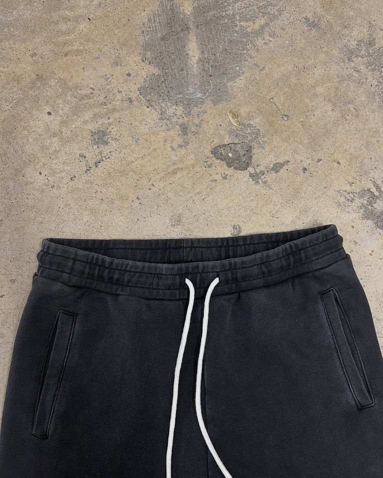 Ensemble jogging deux pièces personnalisé avec logo vieilli, sérigraphie DTG, délavé à l'acide, vintage, pantalon évasé et sweat à capuche pour homme