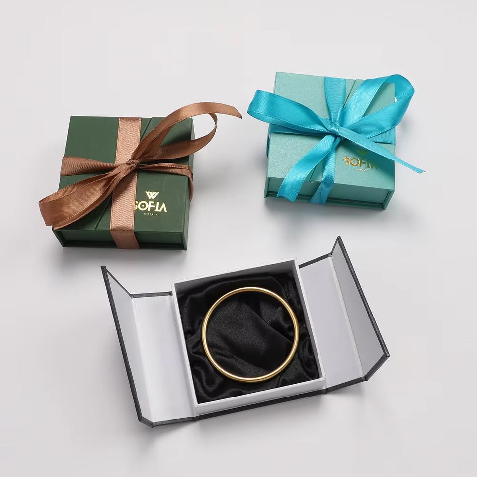Boîte à bijoux en papier personnalisée avec logo, moderne, rectangulaire, à double ouverture, avec fermeture magnétique, pour ranger les bagues, les bracelets, les colliers