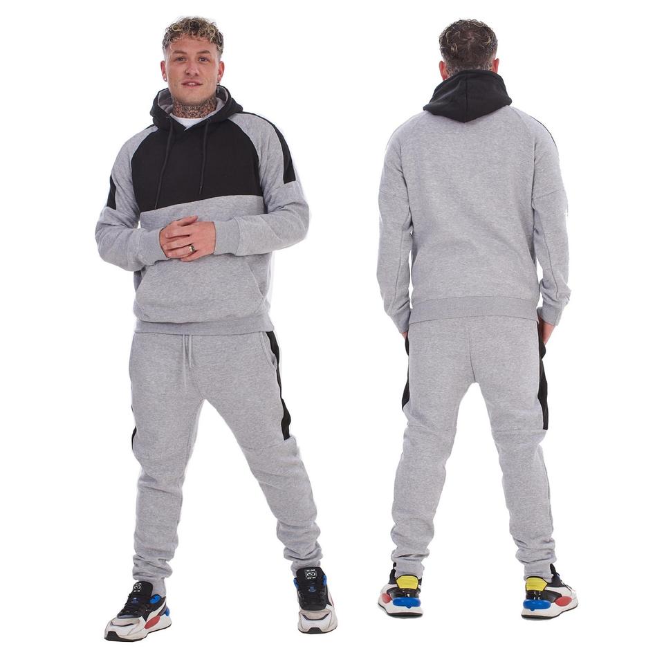 Logo personnalisé Sweat à capuche à double fermeture éclair et pantalon évasé Ensemble pour hommes 2 pièces Survêtements pour hommes Ensemble deux pièces Ensemble de survêtements en coton éponge pour hommes