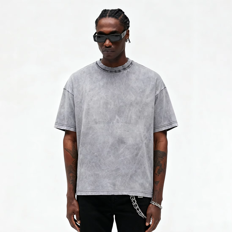 T-shirts personnalisés pour hommes à logo sur mesure, coupe épaules tombantes, en tissu épais délavé à l'acide, style vintage délavé à l'acide, coupe légèrement carrée, collection 2026