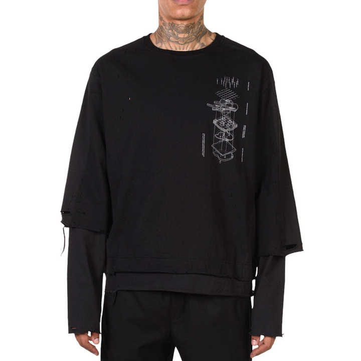 Logo personnalisé DTG Impression à manches longues double couche T-shirt pour hommes Vintage à manches longues T-shirts pour hommes