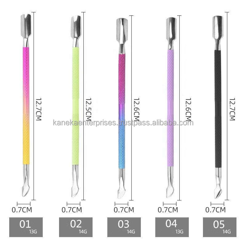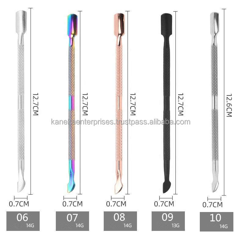 Pousse-cuticules double tête en acier inoxydable avec logo personnalisé, éliminateur de peaux mortes, pour manucure et pédicure, réutilisable, en métal