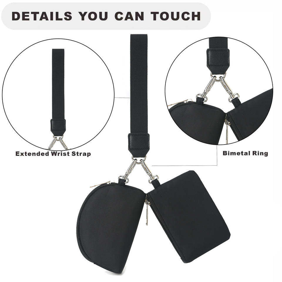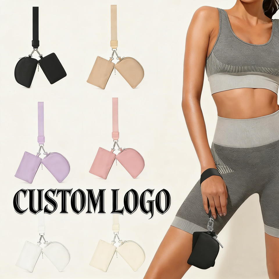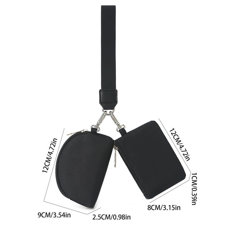 Portefeuille à double pochette avec logo personnalisé, porte-clés, mini portefeuille zippé pour femmes, pochette portable pour poignet, porte-monnaie en nylon
