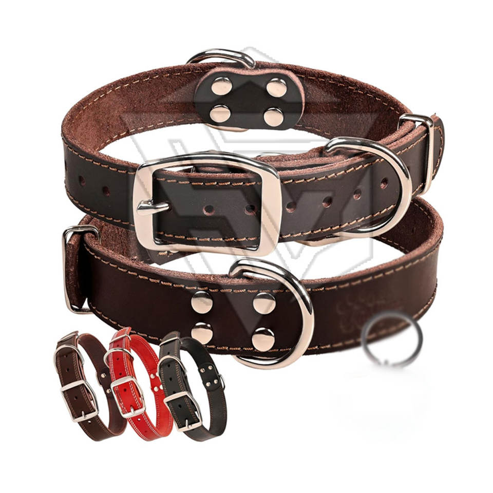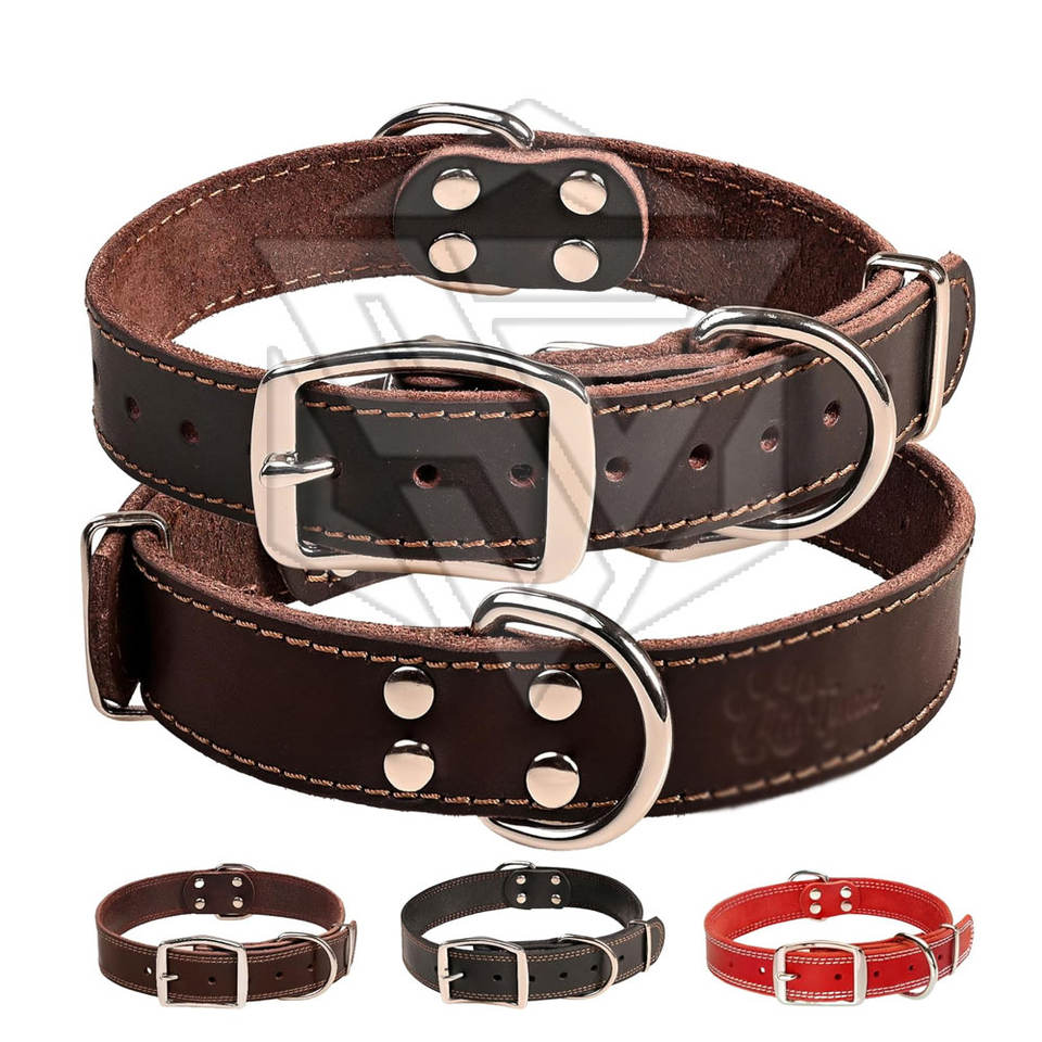 Vente de gros Logo personnalisé Ensemble collier et laisse durables en cuir véritable pour chien pour animaux de compagnie