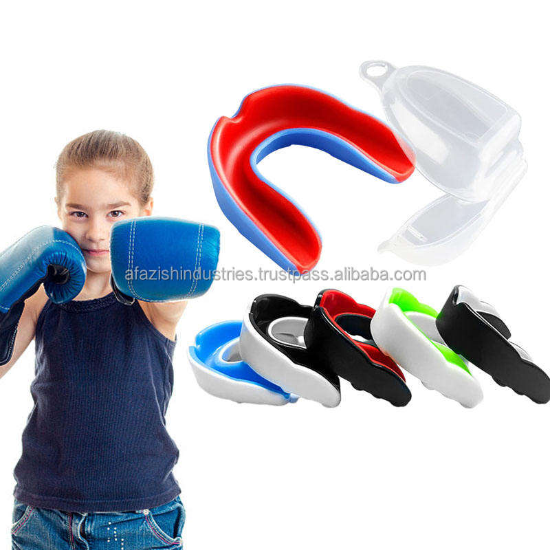 Logo personnalisé EVA bicolore Protège-dents de qualité alimentaire Options de couleur personnalisées pour la boxe et le football Stock d'usine