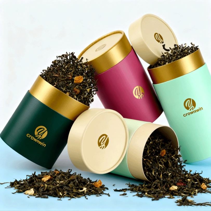Boîtes en carton cylindriques de luxe écologiques de qualité alimentaire avec logo personnalisé, estampillage doré, emballage pour thé et café, tube en papier