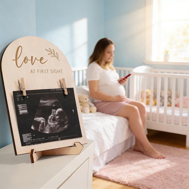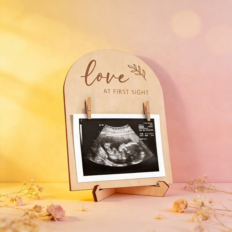 Cadre photo commémoratif pour bébé en bois, double face, écologique, avec logo personnalisé, pour la naissance, à suspendre au mur