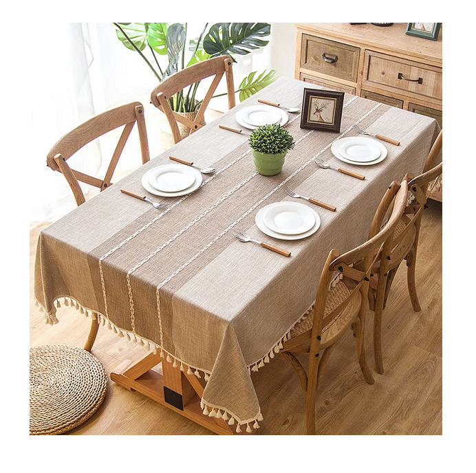 Nappe de table en lin écologique avec logo personnalisé Nappe en coton rectangulaire en jacquard épais français imperméable et non tachant