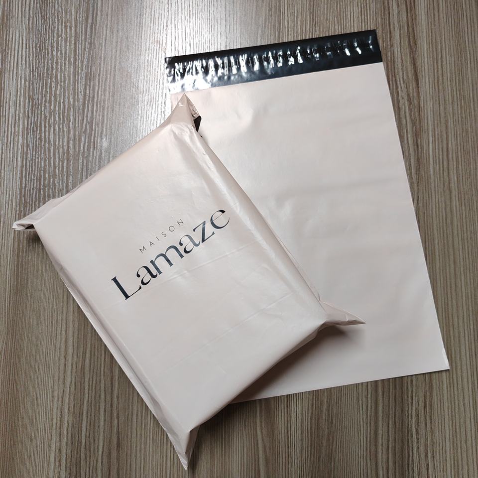 Enveloppes en plastique auto-adhésives écologiques imperméables de couleur beige avec logo personnalisé, sacs d'expédition pour vêtements