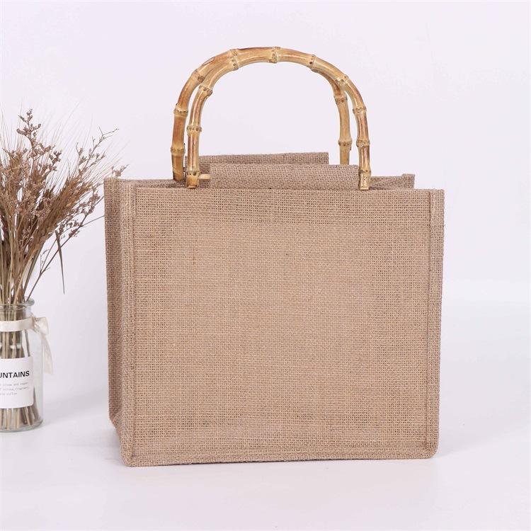 Sac fourre-tout à provisions avec poignée en jute et logo personnalisé écologique Sac en toile de jute réutilisable avec poignée en bambou pour cadeau et promotion