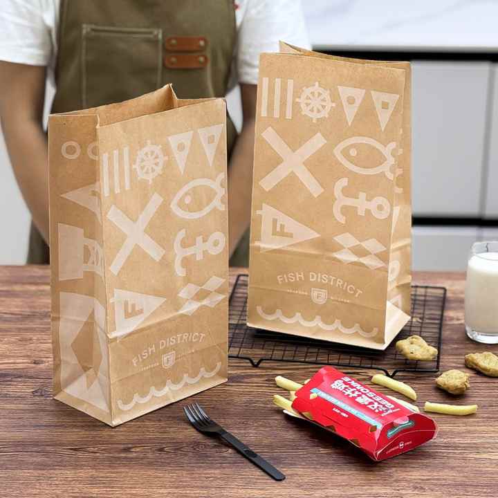 Sac en papier kraft écologique personnalisé avec logo pour emballage de hamburgers à emporter, restauration rapide, frites, biodégradable, recyclable, avec poignée