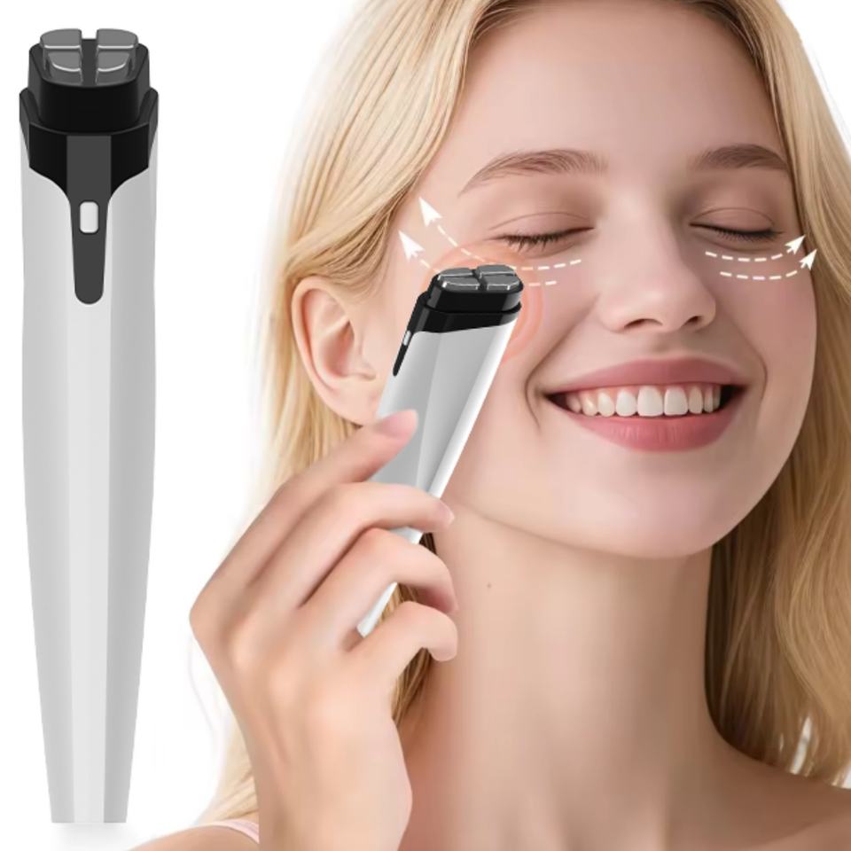 Masseur oculaire électrique à vibration avec logo personnalisé, anti-âge, anti-rides, éliminateur de cernes, éliminateur de poches sous les yeux, soin de beauté, raffermissement de la peau
