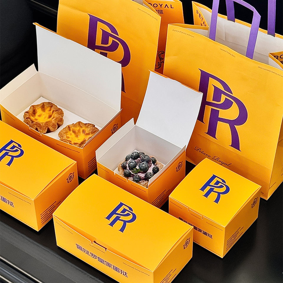 Boîte d'emballage de cuisson de tarte et de gâteau aux œufs jetables écologiques en relief avec logo personnalisé avec impression en quatre couleurs