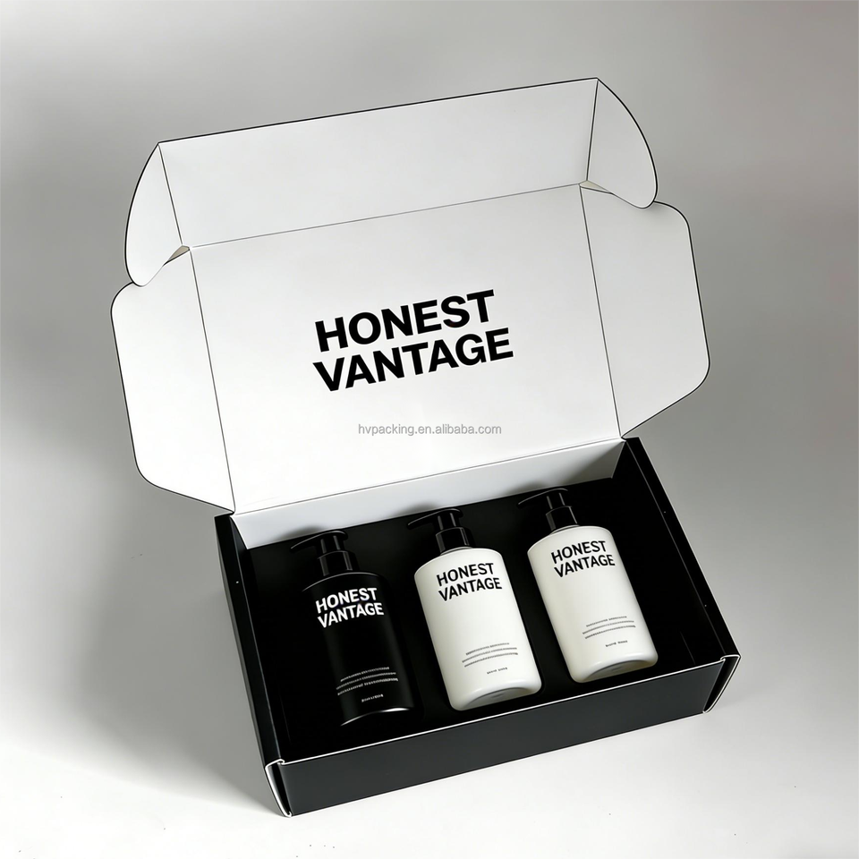 Boîte d'expédition en papier ondulé pliable avec logo personnalisé en relief, pour produits capillaires, shampooing, peigne, emballage recyclable, avec séparateurs et inserts
