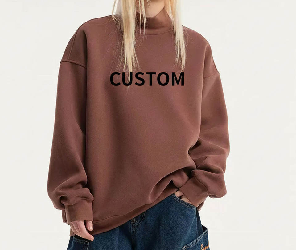 Sweat-shirt en polaire respirant à col montant pour femme, avec logo personnalisé brodé et sequins, coupe oversize, hiver, écologique, séchage rapide
